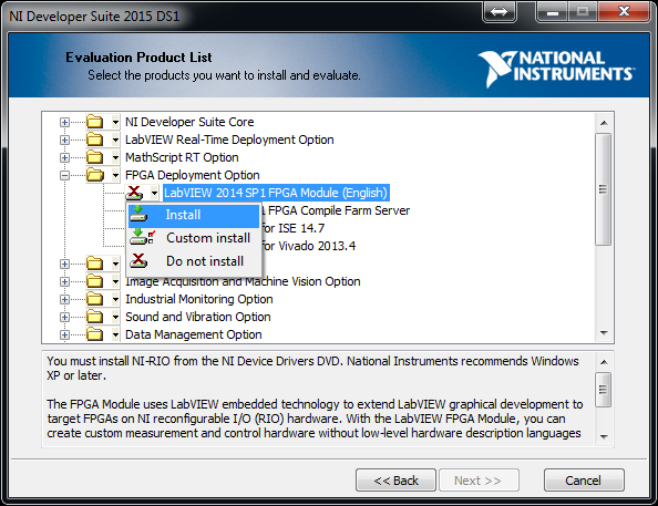 Eventually only FPGA module necessary to edit the FPGA VIs will be installed and saves you installation time and disk space.