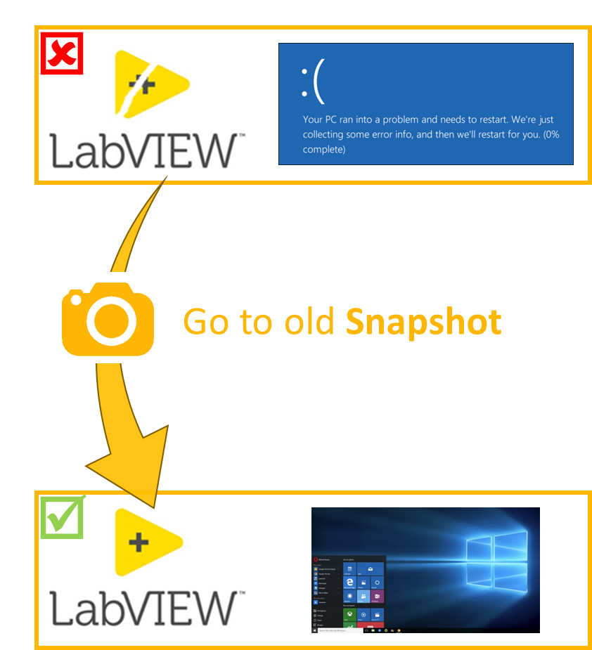 LabVIEW + Virtual MachineBenefit 2: Snapshots helps to recover from any catastrophes